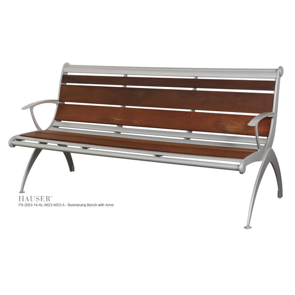 Boomerang Bench with ArmsPS-2053-14-ALW - Boomerang Bench with Arms and Tropical Wood Slats